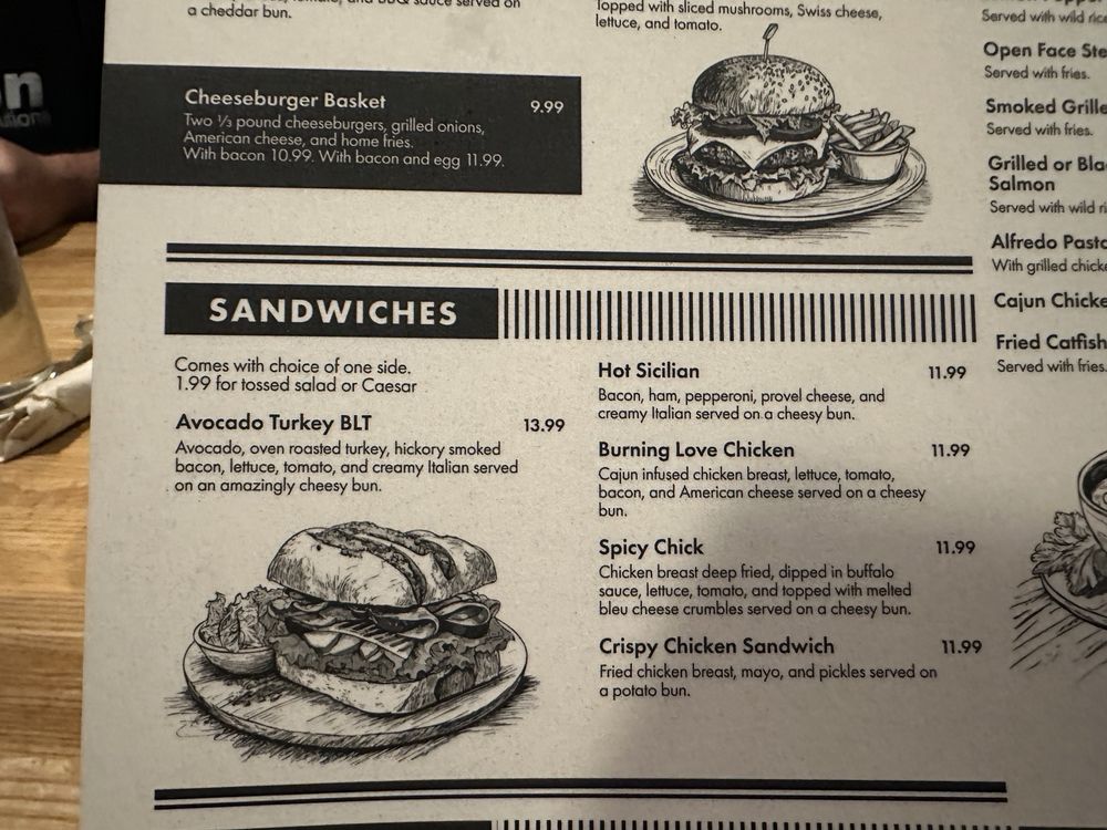 Avocado, oven roasted turkey, bacon, lettuce, tomato, and creamy Italian dressing. Served on a cheddar bun.