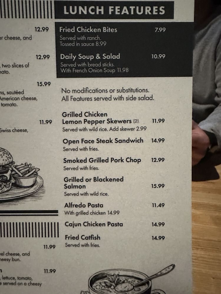 Choice of Alfredo, Cajun Chicken, or Kid-sized Alfredo Pasta paired with Chatters Chicken, Caesar, or Strawberry Salad.
