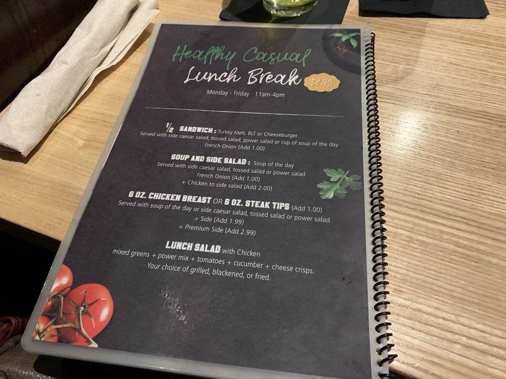 Healthy casual. romaine lettuce cheese crisps and parmesan cheese tossed in caesar dressing your choice of protein.